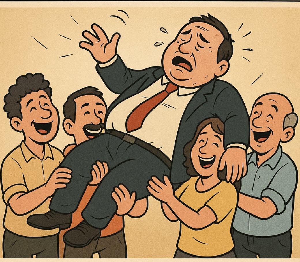 O Edil fez sua tradicional “aparição” no baile do salão da igreja: chegou de pé, mas saiu nos braços dos eleitores, como um verdadeiro santo… só que padroeiro da cachaça.